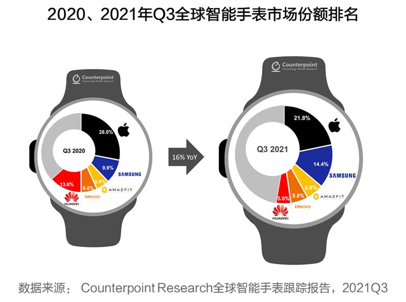 *文章数据来源:https://www.counterpointresearch.com/wear-os-share-surges-samsungs-highest-quarterly-smartwatch-shipments-q3-2021/