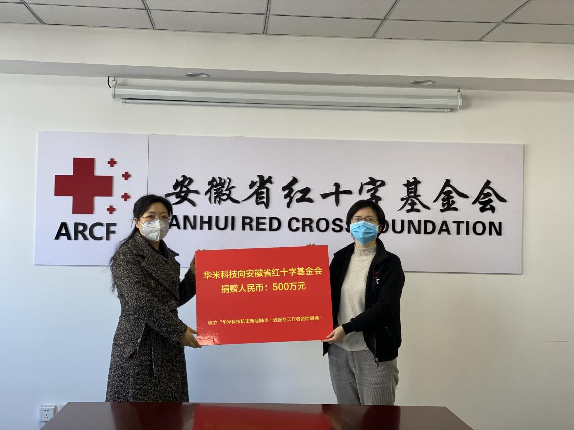 2020年初,新冠疫情爆发后,华米科技积极响应国家和红十字会的要求及部署,一方面迅速从全球采购价值550余万元的医疗物资,送达鄂皖等地95家医院及政府防疫机构等,守护患者和一线医务人员的生命健康安全;另一方面向安徽省红十字基金会和中国科学技术大学教育基金会捐赠设立总额为600万元的抗疫专项基金,为安徽省前四批援鄂医疗队860位医务人员,提供每人6000元的生活补助。同时,公司还积极利用自身的技术创新优势,通过大数据和人工智能技术助力疫情防控,专门研发针对新冠肺炎疫情下医护人员心理问题的智能减压手表,并送达武汉医护人员手中。